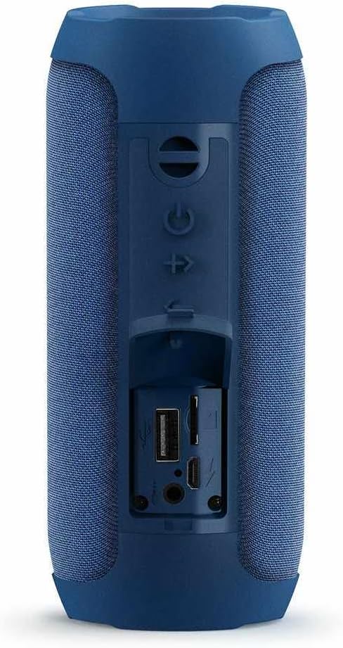 Altavoz estéreo con tecnología Bluetooth 5.0 y True Wireless Stereo para utilizar dos unidades simultáneamente. Doble membrana de realce de bajos, reproductor MP3 por USB / microSD, radio FM y entrada de audio.