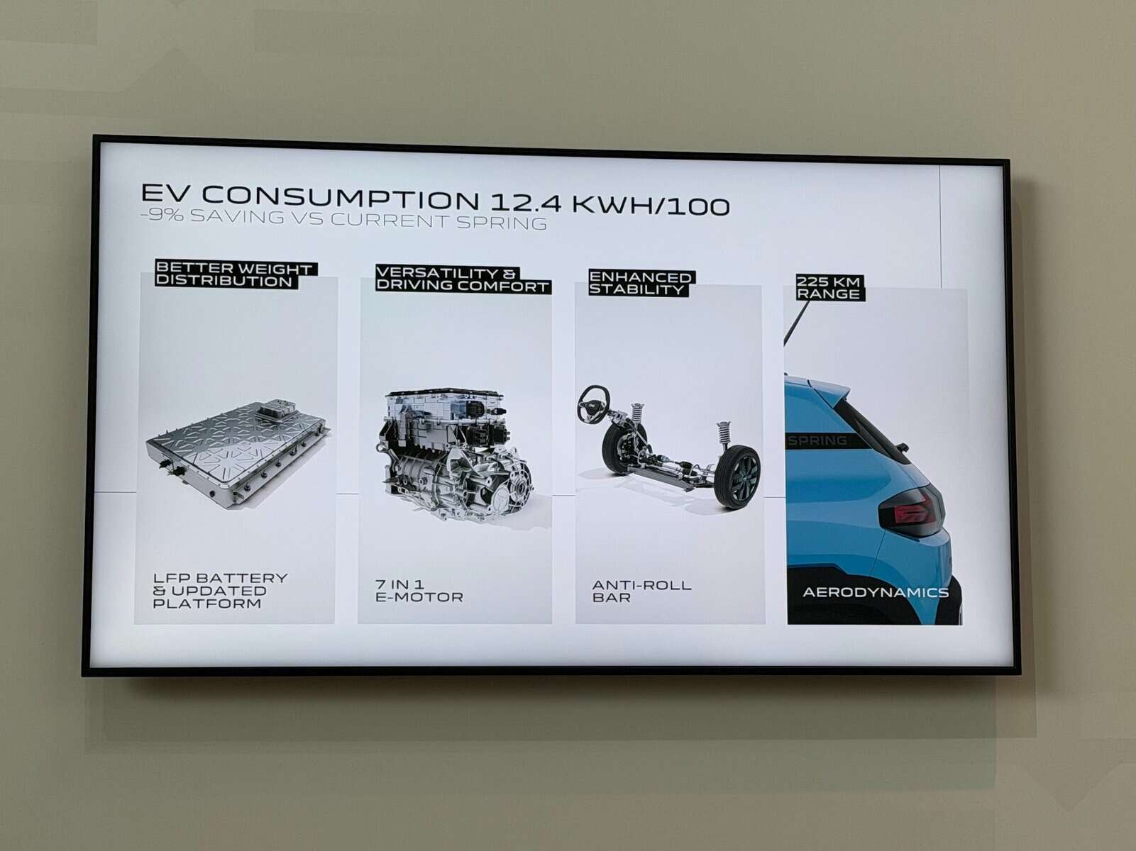 El consumo promedio desciende a Solo 12.4 kWh/100 kmManteniéndolo entre los eléctricos más eficientes del mercado.