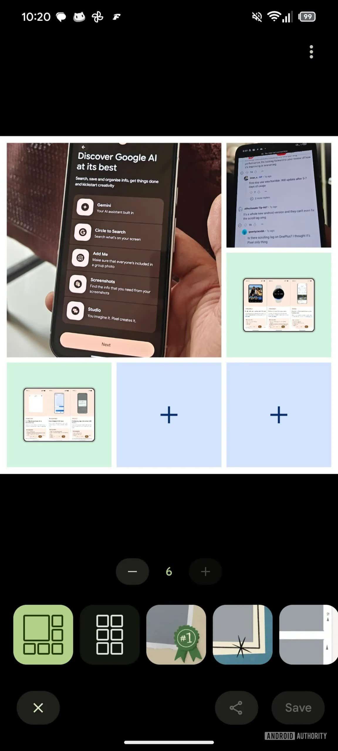 Aún mejor: habrá botones + y, que le permitirán aumentar o reducir la cantidad de cajas (hasta 6), dando mucha más flexibilidad para hacer collages a su gusto.