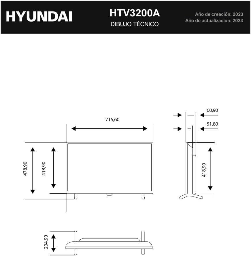 123.06 Panel LED de 32», máxima calidad de imagen HD y eficiencia energética E. Android TV versión 12. 0 y compatible con sintonizador DVB-S2/T2. Estética negra con patas.